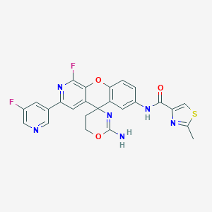 CC1=NC(=CS1)C(=O)NC2=CC3=C(C=C2)OC4=C(N=C(C=C4C35CCOC(=N5)N)C6=CC(=CN=C6)F)F