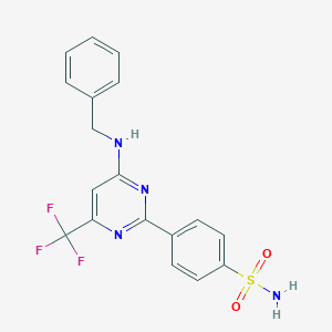 1S/C18H15F3N4O2S/c19-18(20,21)15-10-16(23-11-12-4-2-1-3-5-12)25-17(24-15)13-6-8-14(9-7-13)28(22,26)27/h1-10H,11H2,(H2,22,26,27)(H,23,24,25)