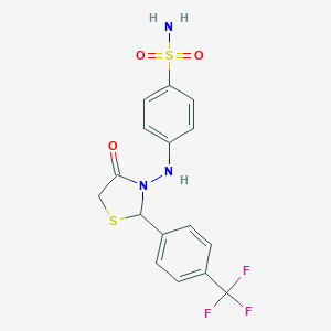 1S/C16H14F3N3O3S2/c17-16(18,19)11-3-1-10(2-4-11)15-22(14(23)9-26-15)21-12-5-7-13(8-6-12)27(20,24)25/h1-8,15,21H,9H2,(H2,20,24,25)
