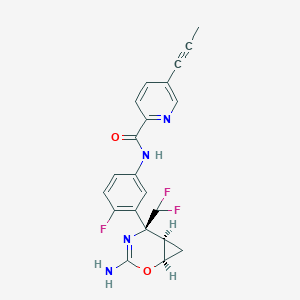 1S/C21H17F3N4O2/c1-2-3-11-4-7-16(26-10-11)18(29)27-12-5-6-15(22)13(8-12)21(19(23)24)14-9-17(14)30-20(25)28-21/h4-8,10,14,17,19H,9H2,1H3,(H2,25,28)(H,27,29)/t14-,17+,21+/m0/s1