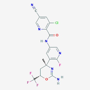 C[C@]1(C[C@H](OC(=N1)N)C(F)(F)F)C2=C(N=CC(=C2)NC(=O)C3=C(C=C(C=N3)C#N)Cl)F