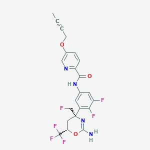 CC#CCOC1=CN=C(C=C1)C(=O)NC2=CC(=C(C(=C2)F)F)[C@@]3(C[C@H](OC(=N3)N)C(F)(F)F)CF