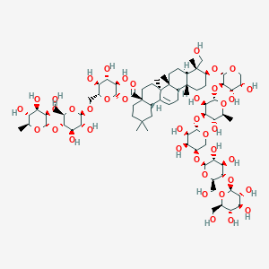 C[C@H]1[C@@H]([C@H]([C@H]([C@@H](O1)O[C@@H]2[C@H](O[C@H]([C@@H]([C@H]2O)O)OC[C@@H]3[C@H]([C@@H]([C@H]([C@@H](O3)OC(=O)[C@@]45CC[C@@]6(C(=CC[C@H]7[C@]6(CC[C@@H]8[C@@]7(CC[C@@H]([C@@]8(C)CO)O[C@H]9[C@@H]([C@H]([C@H](CO9)O)O)O[C@H]1[C@@H]([C@@H]([C@H]([C@@H](O1)C)O)O[C@H]1[C@@H]([C@@H]([C@@H](CO1)O[C@H]1[C@@H]([C@H]([C@@H]([C@H](O1)CO)O[C@H]1[C@@H]([C@H]([C@@H]([C@H](O1)CO)O)O)O)O)O)O)O)O)C)C)[C@@H]4CC(CC5)(C)C)C)O)O)O)CO)O)O)O