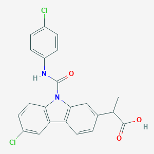 2-[6-Chloro-9-[(4-chlorophenyl)carbamoyl]carbazol-2-yl]propanoic acid