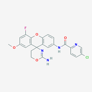 COC1=CC2=C(C(=C1)F)OC3=C(C24CCOC(=N4)N)C=C(C=C3)NC(=O)C5=NC=C(C=C5)Cl