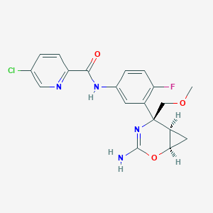1S/C19H18ClFN4O3/c1-27-9-19(13-7-16(13)28-18(22)25-19)12-6-11(3-4-14(12)21)24-17(26)15-5-2-10(20)8-23-15/h2-6,8,13,16H,7,9H2,1H3,(H2,22,25)(H,24,26)/t13-,16+,19+/m0/s1