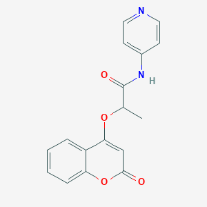 1S/C17H14N2O4/c1-11(17(21)19-12-6-8-18-9-7-12)22-15-10-16(20)23-14-5-3-2-4-13(14)15/h2-11H,1H3,(H,18,19,21)