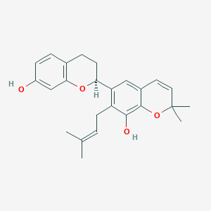 1S/C25H28O4/c1-15(2)5-9-19-20(13-17-11-12-25(3,4)29-24(17)23(19)27)21-10-7-16-6-8-18(26)14-22(16)28-21/h5-6,8,11-14,21,26-27H,7,9-10H2,1-4H3/t21-/m0/s1