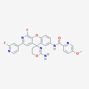COC1=CN=C(C=C1)C(=O)NC2=CC3=C(C=C2)OC4=C(N=C(C=C4C35CCOC(=N5)N)C6=CC(=NC=C6)F)F