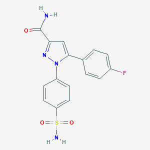 C1=CC(=CC=C1C2=CC(=NN2C3=CC=C(C=C3)S(=O)(=O)N)C(=O)N)F