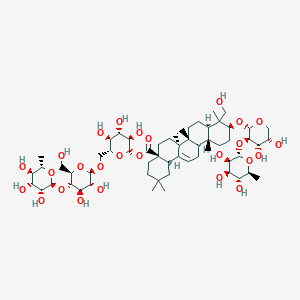 1S/C59H96O26/c1-24-34(63)38(67)42(71)49(78-24)83-46-29(20-60)80-48(45(74)41(46)70)77-22-30-37(66)40(69)44(73)51(81-30)85-53(75)59-17-15-54(3,4)19-27(59)26-9-10-32-55(5)13-12-33(56(6,23-61)31(55)11-14-58(32,8)57(26,7)16-18-59)82-52-47(36(65)28(62)21-76-52)84-50-43(72)39(68)35(64)25(2)79-50/h9,24-25,27-52,60-74H,10-23H2,1-8H3/t24-,25-,27-,28-,29+,30+,31+,32+,33-,34-,35-,36-,37+,38+,39+,40-,41+,42+,43+,44+,45+,46+,47+,48+,49-,50-,51-,52-,55-,56?,57+,58+,59-/m0/s1