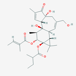 1S/C30H42O8/c1-9-15(3)25(33)37-24-18(6)29(36)20(22-27(7,8)30(22,24)38-26(34)16(4)10-2)12-19(14-31)13-28(35)21(29)11-17(5)23(28)32/h9,11-12,16,18,20-22,24,31,35-36H,10,13-14H2,1-8H3/b15-9+/t16?,18-,20+,21-,22-,24-,28-,29-,30-/m1/s1