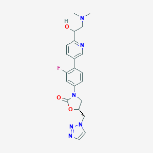 1S/C21H23FN6O3/c1-26(2)13-20(29)19-6-3-14(10-23-19)17-5-4-15(9-18(17)22)28-12-16(31-21(28)30)11-27-8-7-24-25-27/h3-10,16,20,29H,11-13H2,1-2H3/t16-,20?/m0/s1